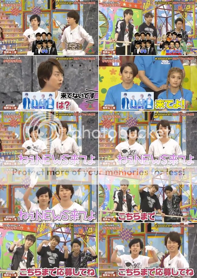 翔說V6和關八都來過了,那NEWS呢?staff桑表示NEWS暫時還沒來過。翔於是喊話了『(NEWS)來啊!ね!NEWS快來啊。』NINO『可以在這裡(指字幕)應募來參加喔。』他們不用應募啦。哈哈哈!