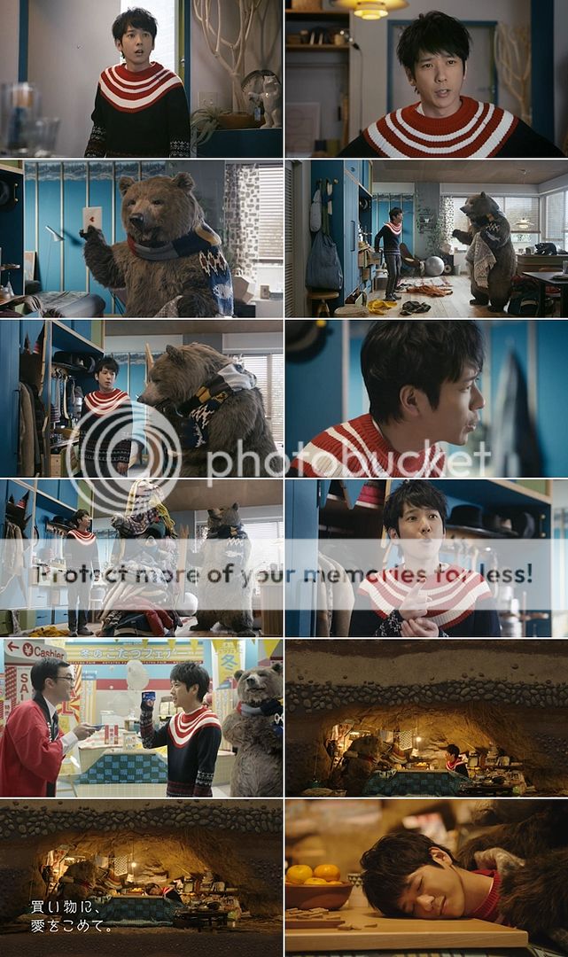 然後熊朋友就把一堆的冬天衣服疊的高高的,NINO『為什麼都是冬天的服飾?啊!冬眠啊。』因為冬天嘛~~~熊熊想冬眠,二宮和也也想冬眠。哈哈哈!
