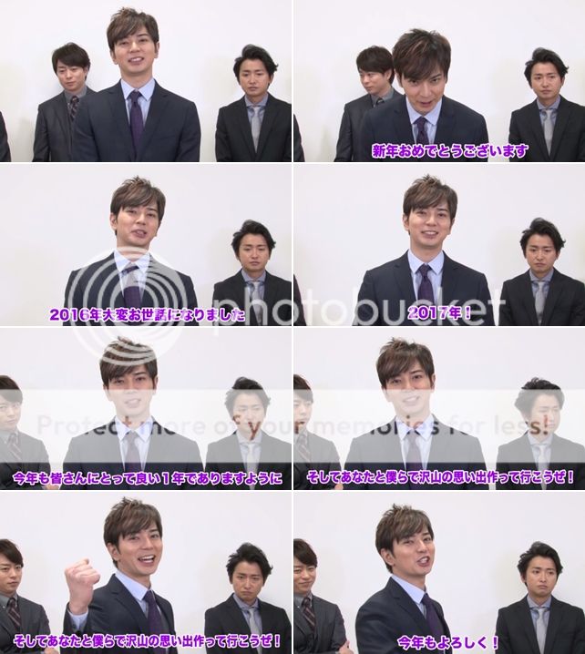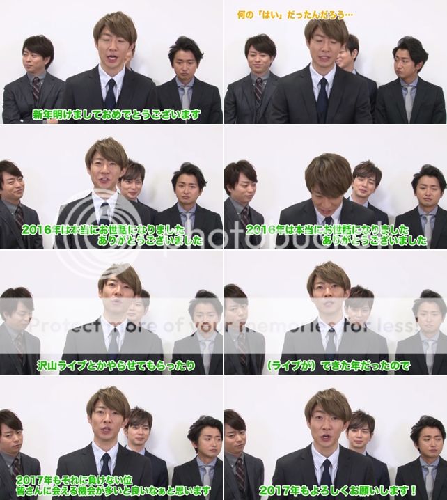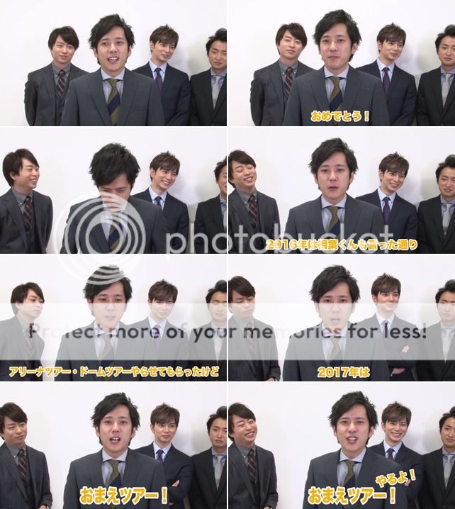 恭喜!(整個超帥氣的說法。只有一句おめでとう)2016年呢就像相葉桑說的又是arena tour又是巨蛋巡迴。2017年的話你們來辦tour!(哇哈哈哈哈!!喂喂!!什麼啦!!我們辦你們來看啊?哈哈哈)