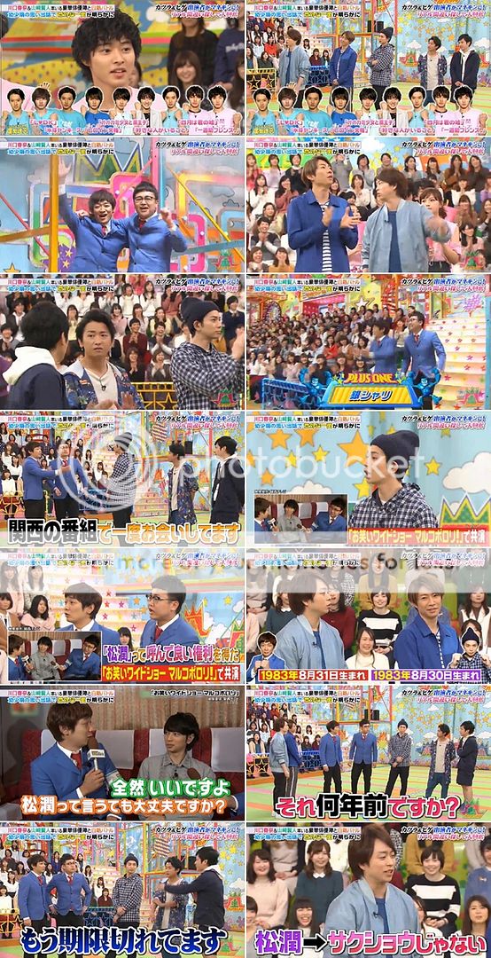 今天的PLUS ONE好像是第一次來的印シャリ。曾經是某個搞笑藝人甄選節目出爐的冠軍組合。問他們是不是第一次和嵐合演?他們說之前有和J在節目上碰面過。當時他們問J可不可以直接稱呼他為松潤,J很豪爽的說可以。然後弟控就挑踹問說那是多少年前的事了?兩人『3年』NINO『那有效期限過了。』哈哈哈!!本人都沒說話啊。果然是弟控。