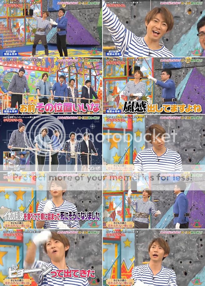 時間到了之後,翔就問岡田他到底哪裡不一樣?岡田就說翔原本拿那個玩偶很溫柔的,後來變成好像在對玩偶說你給我在前面站好的氣勢。噗!!!