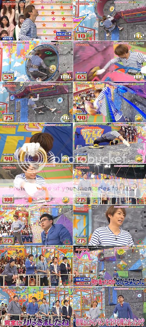 雅紀真的太瘦了所以CLEAR了飛下來時候因為太沒重量到處飛呢。但是我就說啊穿西裝來攀岩根本就是來亂的。結果還到最後關鍵時候從上面掉下來。已經嚴重落後分數了呀。