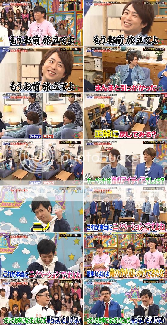 我說嵐隊的困難度好高喔!!連雅紀和橋本外套對調都能猜出來,還蠻厲害的。我基本上只看出利達假髮換了。哈哈哈!J後面的兩幅畫對調也很強啊!!