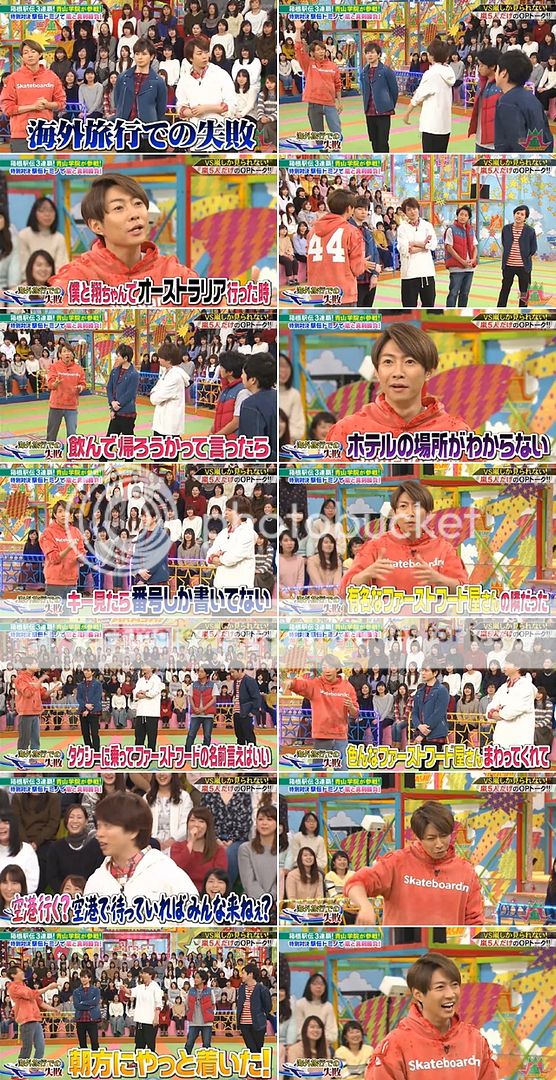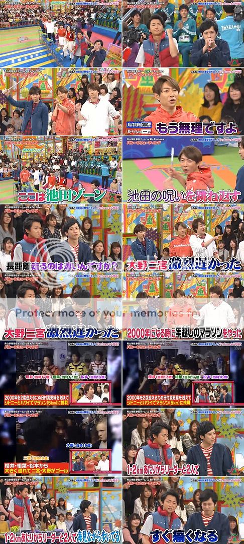 說到長跑這件事,翔就說那裡的大宮兩位對於長跑非常慢。2000年時候他們去了澳大利亞參加比賽時候,雅紀、翔和潤都跑回來了,結果都看到一群COSPLAY的人都跑回來了才發現大宮這時候出現。哈哈哈哈!!怎麼會跑得比一堆畫濃妝的人慢啊?NINO就說其實1.2公里開始利達和他就一邊在看海一邊慢慢走到終點。哈哈哈!!利達就說那樣跑盲腸很痛。說的也是沒練的人確實會這麼覺得。
