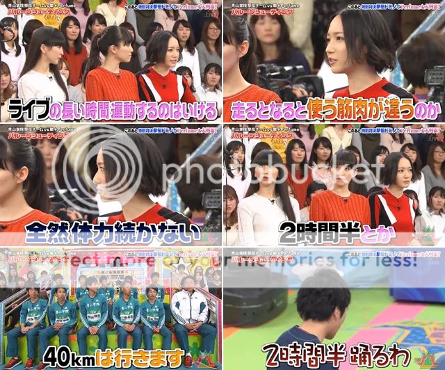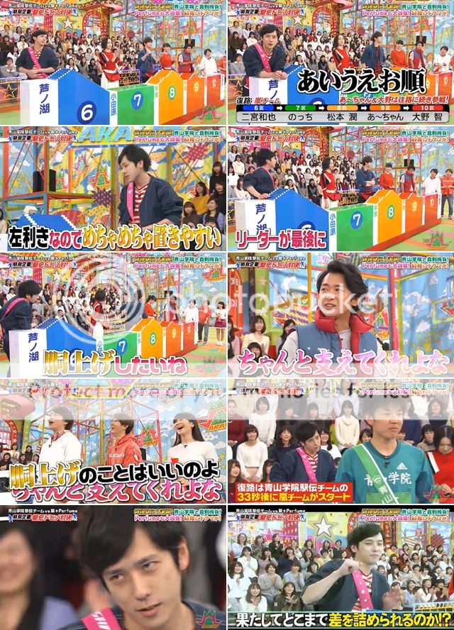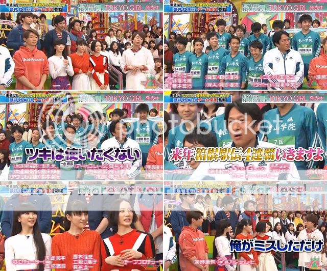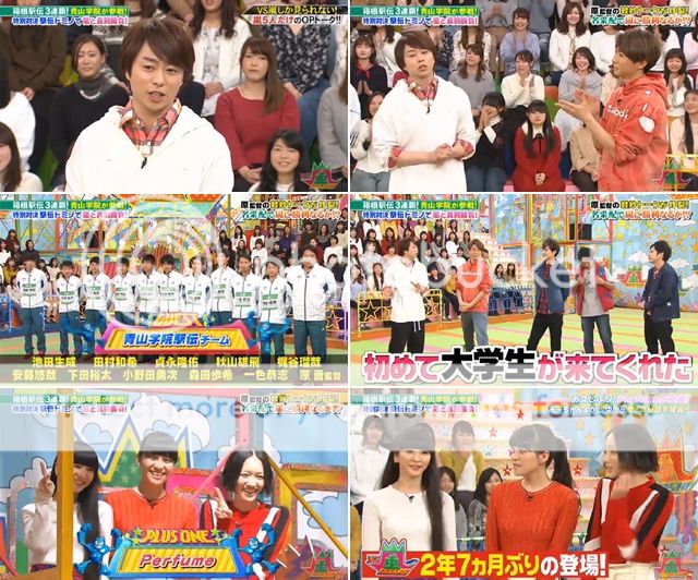 今天的嘉賓就是青山學院的長跑選手們。這是第一次大學生來參加節目。然後今天的PLUS ONE是香水小姐們。最近出單曲了。青山的男孩們好像對香水小姐們很喜愛,她們一出來他們就好high啊。原來其中有人是她們的飯。還現場在本人面前跳了一段。好丟臉啊!!我才不干這事。哈哈哈!