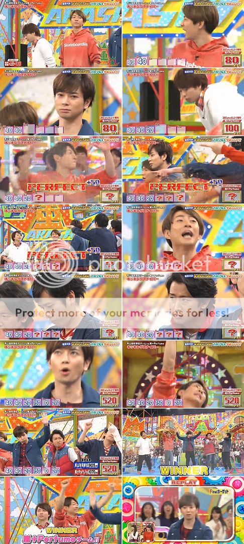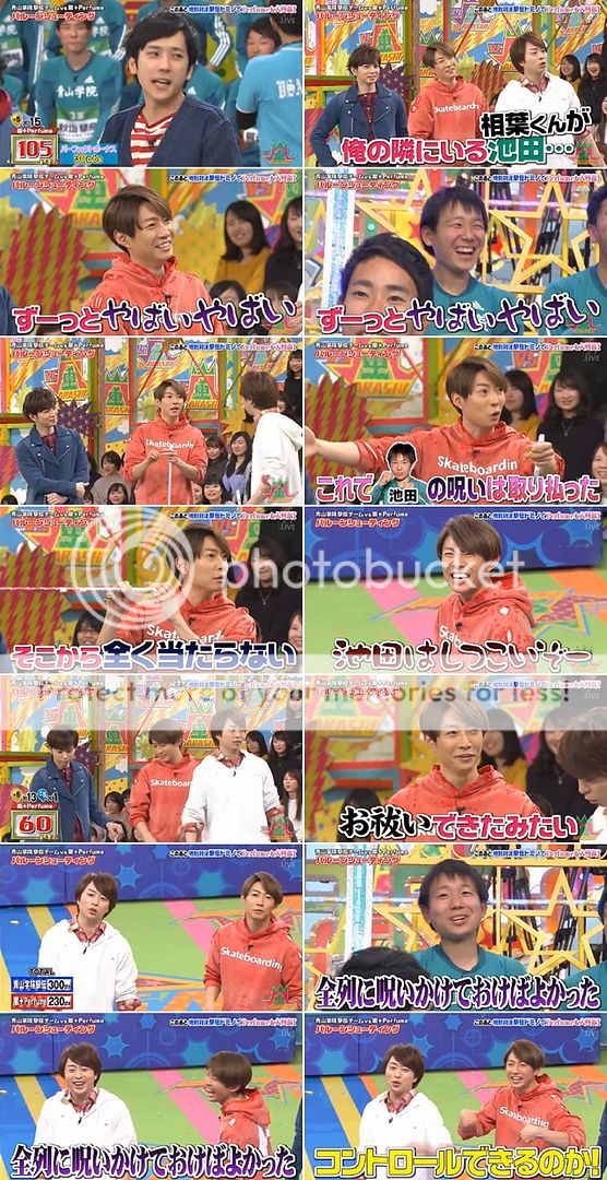 第一輪PERFECT,而且沒刺破藍色氣球。強!翔故意調侃說他隔壁的池田……不、是相葉君啊一直在說牙白牙白。雅紀很自信的說自己有射中氣球所以沒有跟池田弟弟一樣。