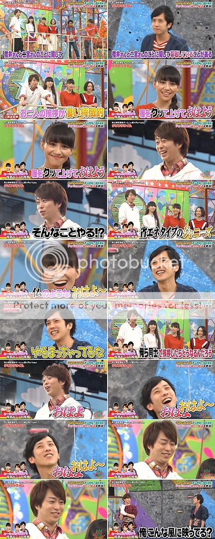 天音說香水小姐有想對J說的事。就是之前香水小姐們的演唱會映像在電視上播放時候,J主動給了她們意見。門把就說他可是用很在意的心情在看的。給了她們很好的意見很感謝。J說那可是他自己的個人意見。NINO就說最近J又看了她們的映像又說了呢。(開始模仿J在看映像時候的動作)『要是也開發鞋子就好了。』